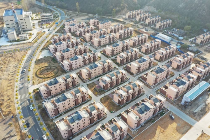 河北阜平縣史家寨易地扶貧搬遷安置區(qū)(10月29日攝,無人機(jī)照片)。新華社記者 朱旭東 攝
