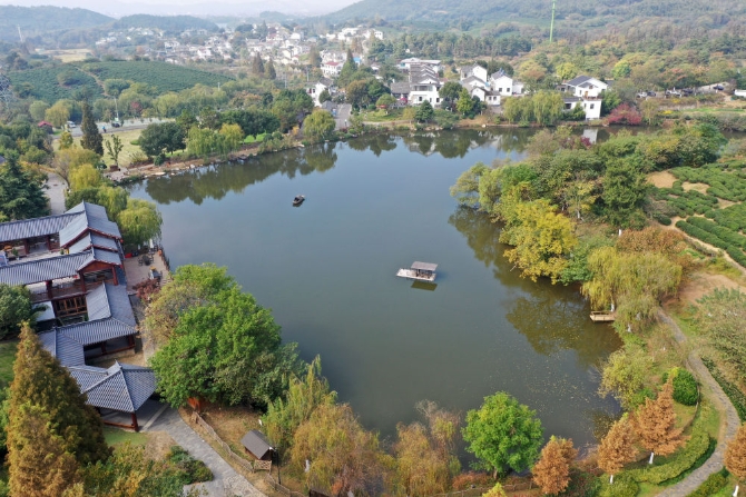 江蘇南京市江寧區(qū)黃龍峴茶文化特色村(11月6日攝,無人機(jī)照片)。新華社記者 金良快 攝