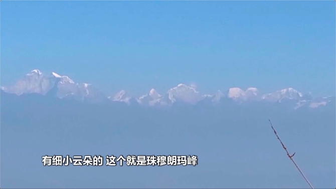 總臺記者 張玥:我現(xiàn)在是在尼泊爾首都加德滿都郊外的一座小山坡上。我把鏡頭拉近一點給大家看一下,現(xiàn)在在我鏡頭正中間的、有細小云朵的,就是珠穆朗瑪峰。
