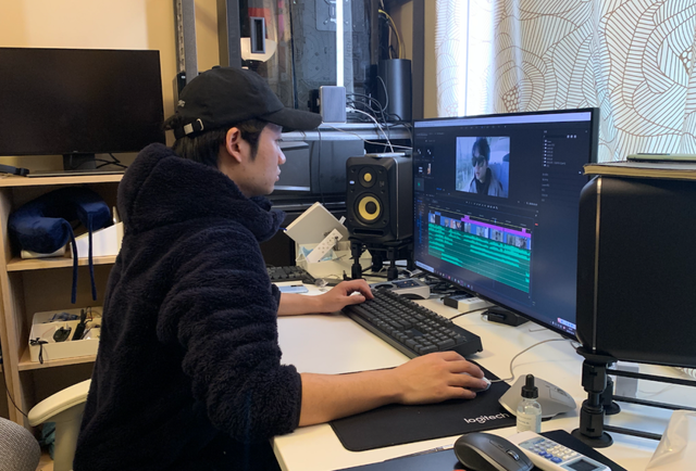 △ 林晨在工作室剪片子。(總臺央視記者張亞瓊/拍攝)
