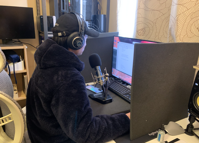 △ 林晨在工作室配音。(總臺央視記者張亞瓊/拍攝)