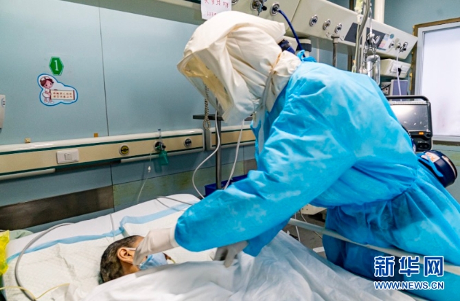 武漢市金銀潭醫(yī)院護(hù)士梁順在工作中(資料照片)。新華社發(fā)