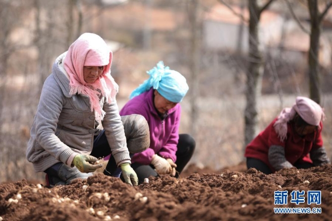 甘肅省定西市渭源縣元古堆村村民在種植百合(2020年3月11日攝)。新華社記者 馬希平 攝