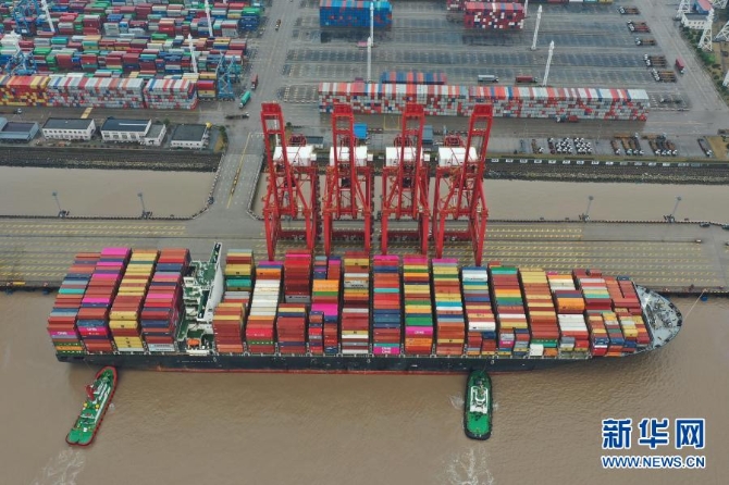 一艘貨輪停靠在寧波舟山港穿山港區(qū)集裝箱碼頭(2020年2月26日攝)。新華社記者 黃宗治 攝