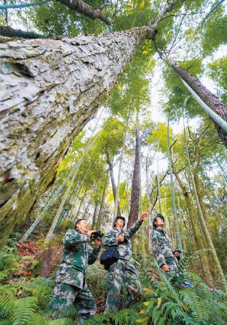 三明林改,緊緊圍繞如何實(shí)現(xiàn)“綠水青山就是金山銀山”,創(chuàng)新林權(quán)流轉(zhuǎn)機(jī)制和林業(yè)產(chǎn)業(yè)發(fā)展機(jī)制,讓廣大林農(nóng)守護(hù)綠水青山,換來(lái)金山銀山。2019年,三明市實(shí)現(xiàn)林業(yè)總產(chǎn)值1146億元,真正把森林資源變成了“水庫(kù)、錢(qián)庫(kù)和糧庫(kù)”。圖為將樂(lè)縣龍棲山國(guó)家級(jí)自然保護(hù)區(qū)護(hù)林員進(jìn)山巡護(hù)森林。 三明市融媒體中心記者 周志鴻/攝