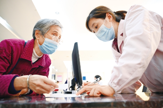 2012年以來(lái),三明市勇于涉“深水區(qū)”、敢于啃“硬骨頭”,闖出了一條破解醫(yī)改難題的新路子。圖為福建省三明市第一醫(yī)院的醫(yī)保辦工作人員(右)向前來(lái)咨詢(xún)藥品報(bào)銷(xiāo)問(wèn)題的居民講解相關(guān)政策。 新華社記者 姜克紅/攝