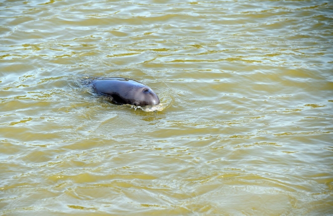 2020年11月11日在安徽省銅陵淡水豚國家級自然保護(hù)區(qū)拍攝的長江江豚。新華社記者 周牧 攝