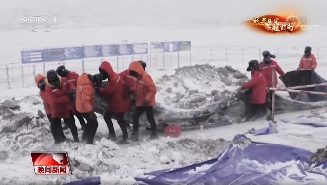 阿里與藏中電網(wǎng)聯(lián)網(wǎng)工程線路13標(biāo)段項(xiàng)目總工 黃小洪:我們搶的就是時(shí)間,如果說我們耽誤到后面這個(gè)沼澤地融化,那設(shè)備進(jìn)不去,連挖機(jī)都進(jìn)不去,更不要說吊車了??油诤昧酥蟊仨氁w起來,不蓋的話明天這個(gè)雪會(huì)吹到里面,直接就填滿了。