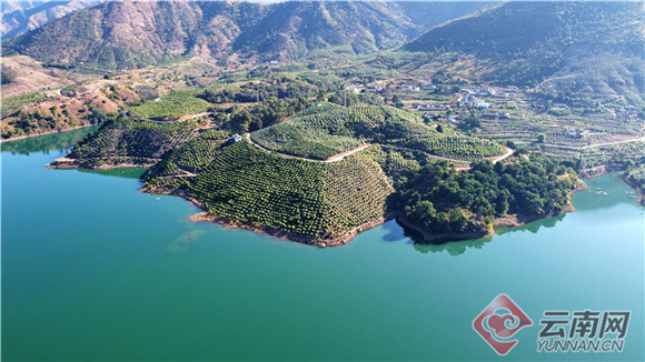 高峽出平湖,“江南”美如畫。一江綠如蘭的碧水,靜謐旖旎,緩緩東流。緊貼岸線的萬畝連片沃柑林鋪展開來,綠染山河,金燦燦的果實(shí)綴滿其間。