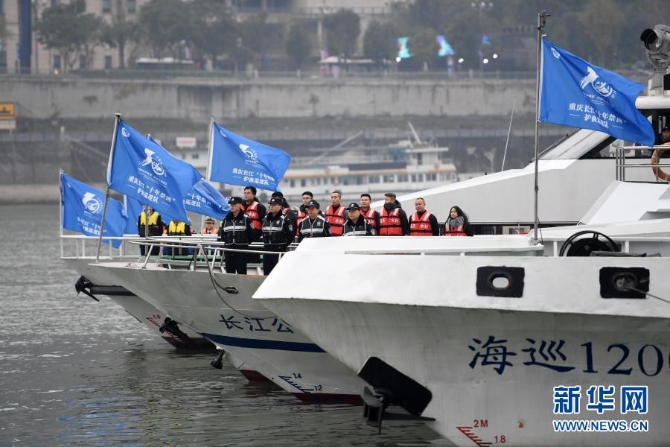 執(zhí)法船隊(duì)在重慶江北嘴執(zhí)法船舶碼頭整裝待發(fā)(2020年12月31日攝)。當(dāng)日,長(zhǎng)江流域重點(diǎn)水域“十年禁漁”全面啟動(dòng)活動(dòng)(重慶分會(huì)場(chǎng))在重慶江北嘴執(zhí)法船舶碼頭舉行。新華社記者 唐奕 攝