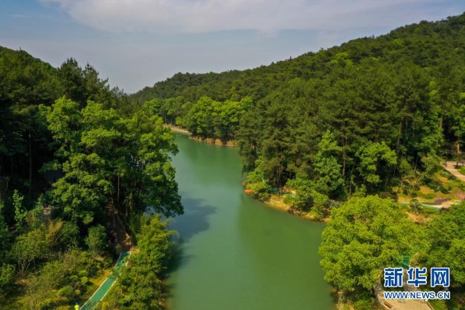 這是2020年5月18日拍攝的經(jīng)過(guò)生態(tài)修復(fù)后景色迷人的重慶縉云山國(guó)家級(jí)自然保護(hù)區(qū)黛湖(無(wú)人機(jī)照片)。新華社記者 劉潺 攝