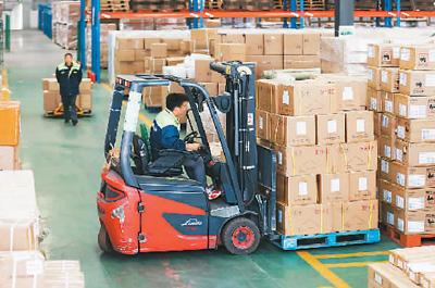 在成都鐵路保稅物流中心(B型)跨境電商保稅倉,工作人員正在配裝出口至歐洲的貨物。 白桂斌攝(人民視覺) |