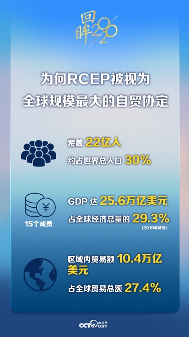 區(qū)域全面經(jīng)濟(jì)伙伴關(guān)系協(xié)定(RCEP)2020年11月15日在東亞合作領(lǐng)導(dǎo)人系列會(huì)議期間正式簽署,世界上人口數(shù)量最多、成員結(jié)構(gòu)最多元、發(fā)展?jié)摿ψ畲蟮淖再Q(mào)區(qū)就此誕生。