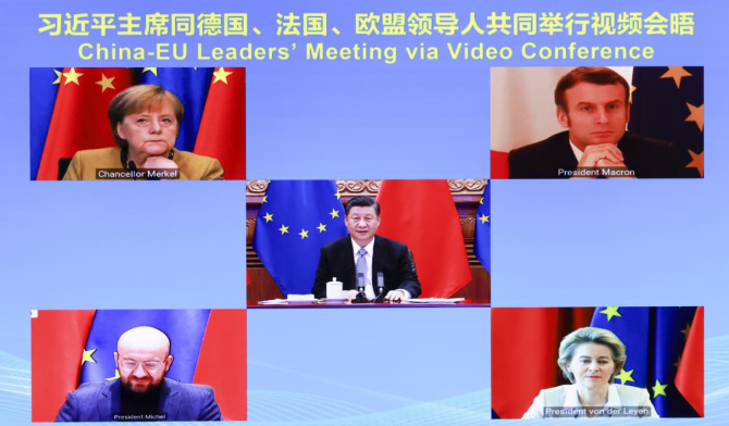 2020年12月30日晚,國(guó)家主席習(xí)近平同德國(guó)、法國(guó)、歐盟領(lǐng)導(dǎo)人共同舉行視頻會(huì)晤。