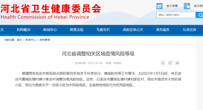 河北省衛(wèi)健委1月5日通報(bào),1月4日,石家莊新增本地確診病例11例,新增本地?zé)o癥狀感染者30例。從確診病例行動(dòng)軌跡看,有3名確診者曾參加婚禮。值得注意的是,河北出現(xiàn)了目前全國唯一的高風(fēng)險(xiǎn)地區(qū)——石家莊藁城區(qū)增村鎮(zhèn)小果莊村。