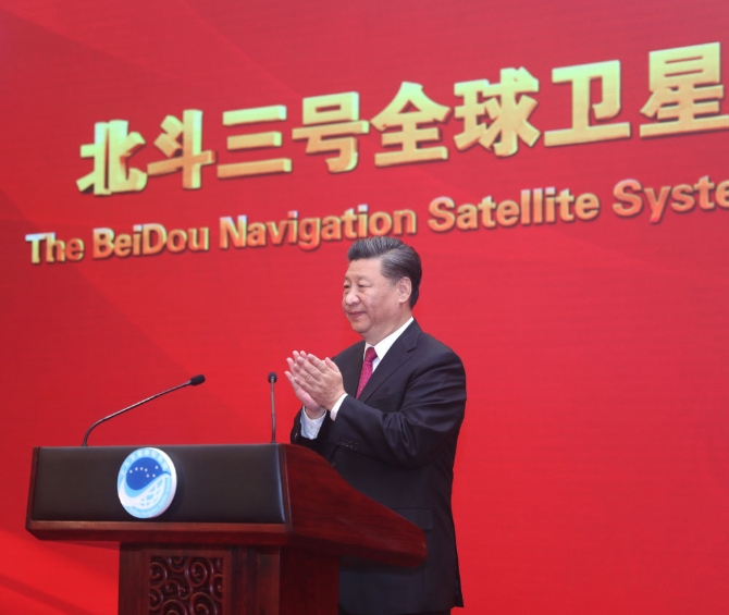 ?↑2020年7月31日上午,北斗三號全球衛(wèi)星導(dǎo)航系統(tǒng)建成暨開通儀式在北京舉行。中共中央總書記、國家主席、中央軍委主席習近平出席儀式,宣布北斗三號全球衛(wèi)星導(dǎo)航系統(tǒng)正式開通。新華社記者 鞠鵬 攝