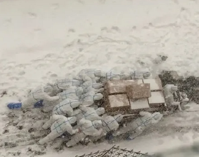 師生志愿者們冒著風(fēng)雪