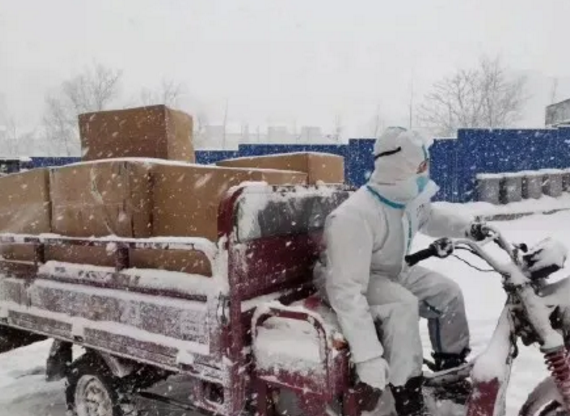 用三輪車裝載防疫物資