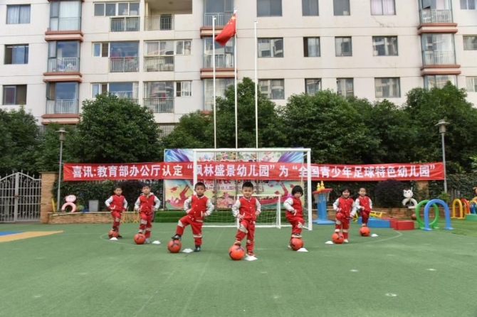 楓林盛景幼兒園園長(zhǎng)張瑤介紹,從2018年開(kāi)始,幼兒園合理利用室內(nèi)外環(huán)境,創(chuàng)設(shè)開(kāi)放的、多樣的區(qū)域活動(dòng)空間,為幼兒提供有利于激發(fā)學(xué)習(xí)探索、安全、豐富、適宜的足球游戲材料和教具。并引進(jìn)社會(huì)資源開(kāi)展以游戲?yàn)楸緛?lái)發(fā)展興趣、展現(xiàn)童趣、鍛煉身體機(jī)能,培養(yǎng)幼兒互動(dòng)合作精神的足球教學(xué),同時(shí)開(kāi)展足球文化建設(shè),通過(guò)板報(bào),講故事等形式傳播足球知識(shí),球星事跡和知名俱樂(lè)部歷史與現(xiàn)狀。孩子在與足球緊密相關(guān)的玩樂(lè)中茁壯成長(zhǎng),培養(yǎng)了近百名孩子對(duì)足球的興趣。