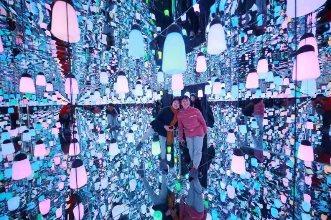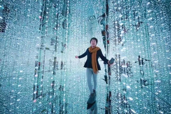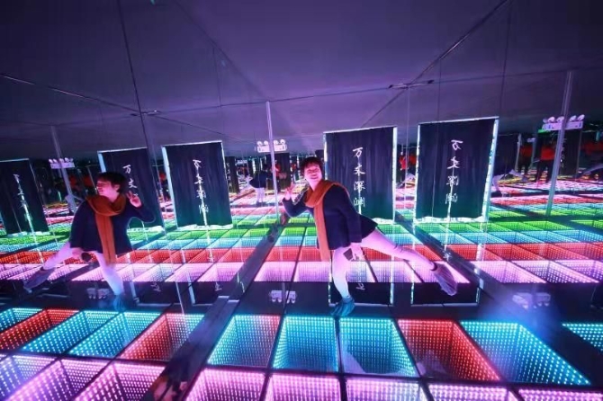 另一個特色體驗區(qū)是星空體驗館,于2020年8月開建,占地達(dá)300平米。進(jìn)入該體驗館,會給游客極強(qiáng)的沉浸式體驗,尤其可以滿足少女們拍攝打卡以及小朋友玩耍的需求。隨著游客進(jìn)入館內(nèi),推開一道道門,眼前呈現(xiàn)的的是不同的五彩斑斕的景觀,身邊縈繞著迷幻空靈的音樂。該館內(nèi)僅設(shè)有9個小體驗館,盡管每個場館約幾平方到40平方米,但通過360度的鏡面環(huán)繞,讓游客在精謐的小世界中身臨其境,好像置身于無限大的星辰大海,每一個景觀都堪稱絕美和新奇,隨手一拍都是一種“想握住此生遼闊,贈你漫天星河”的感覺。