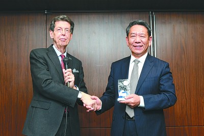 2019年12月5日,在東京開幕的第三屆國際月球村研討會上,中國嫦娥四號探月任務(wù)獲得月球村協(xié)會頒發(fā)的優(yōu)秀探月任務(wù)獎。圖為月球村協(xié)會主席朱塞佩·雷巴爾迪向中國探月工程總設(shè)計師、中國工程院院士吳偉仁(右)頒獎。新華社發(fā)