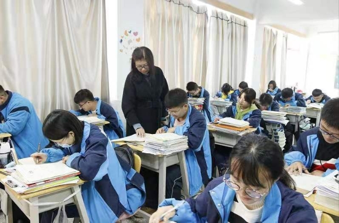 姚傳虹老師檢查晚自習