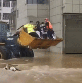 路上積水太多,巡警們將考生一個個背進(jìn)考場;人走不過,就用鏟車送他們準(zhǔn)時赴考;巷子太窄,民警就以木桶為舟,帶著考生一路乘風(fēng)破浪。