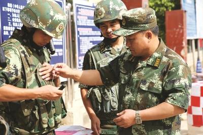 △印春榮(右一)到瀾滄邊境檢查站傳授查緝經(jīng)驗(yàn)