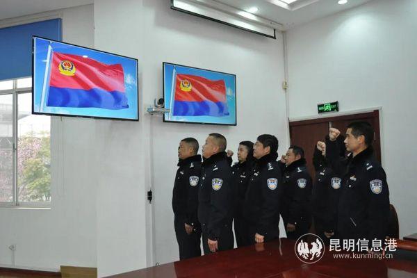 活動現(xiàn)場,100余名公安民警警容嚴(yán)謹(jǐn),儀態(tài)端正,精神抖擻,肅裝待發(fā)。在嘹亮的警歌聲中,紅藍(lán)相間的警旗在昆明市公安局官渡分局機(jī)關(guān)大院緩緩升起。官渡分局組織民警開展了“升警旗 重溫入警誓詞”等系列活動,獻(xiàn)禮首個中國人民警察節(jié)。