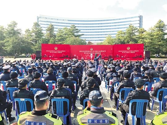 10日,在首個(gè)中國(guó)人民警察節(jié)到來(lái)之際,昆明市公安局西山分局舉行了慶祝首個(gè)“中國(guó)人民警察節(jié)”暨“向人民報(bào)告”主題活動(dòng)。
