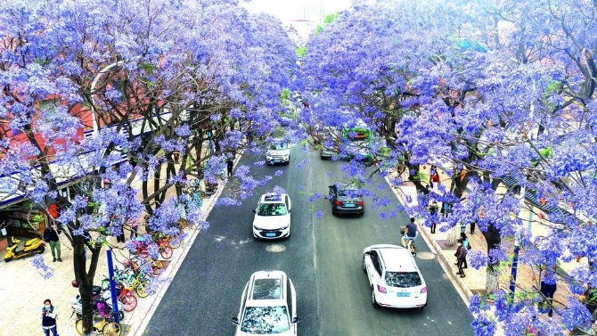 昆明市教場中路盛開的藍(lán)花楹 胡超 攝