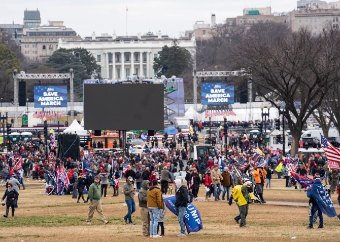 1月6日,在美國首都華盛頓,美國總統(tǒng)特朗普的支持者在國會外舉行示威游行。美國首都華盛頓當(dāng)?shù)貢r間6日發(fā)生暴力示威。部分示威者沖進國會大廈,與警方發(fā)生沖突,造成4人死亡,當(dāng)時正在舉行的認證大選結(jié)果的國會參眾兩院聯(lián)席會議也被迫中斷。(新華社記者劉杰攝)