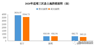 此外,昆明近郊三區(qū)縣房地產(chǎn)項(xiàng)目已達(dá)60余個(gè),更擁有20多家全國知名房企,其中安寧承接主城外溢為主,是目前近郊區(qū)域開發(fā)項(xiàng)目最多的區(qū)域,而嵩明和晉寧則擁有數(shù)個(gè)千畝以上的文旅大盤。2020年近郊三區(qū)縣成交與供應(yīng)量最大的是安寧,安寧土地銷售額占三區(qū)縣銷售總額78%,近郊土地出讓以住宅為主,晉寧商業(yè)用地供應(yīng)較大,而今年土地溢價(jià)能力最高的是嵩明,溢價(jià)率達(dá)6%