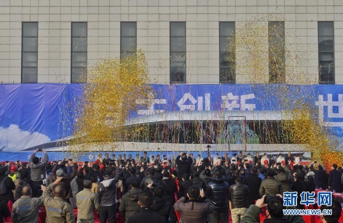 這是1月13日拍攝的高溫超導高速磁浮工程化樣車及試驗線啟用儀式現(xiàn)場。新華社記劉坤/攝
