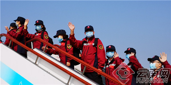 4月8日,中國(guó)政府赴緬甸抗疫醫(yī)療專家組出征儀式在昆明長(zhǎng)水機(jī)場(chǎng)舉行。記者 龍彥 夏方海 攝