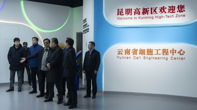 雙方領(lǐng)導(dǎo)及工作人員在云南省細(xì)胞工程中心參觀。實(shí)習(xí)生張楊/攝