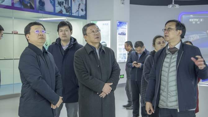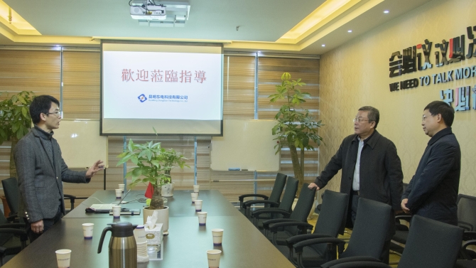 雙方領(lǐng)導(dǎo)及工作人員到高新區(qū)孵化區(qū)管理中心內(nèi)企業(yè)——昆明東電科技有限公司參觀。實(shí)習(xí)生張楊/攝