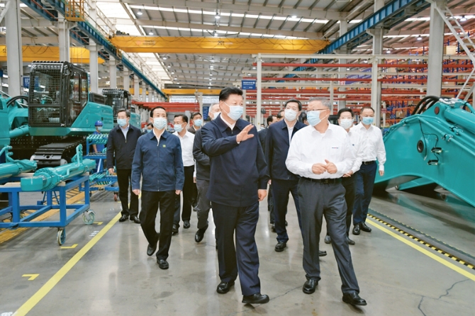 ?2020年9月16日至18日,中共中央總書記、國家主席、中央軍委主席習近平在湖南考察。這是17日下午,習近平在長沙市山河智能裝備股份有限公司生產(chǎn)車間,察看裝備制造流程,了解技術研發(fā)、生產(chǎn)制造情況。 新華社記者 李學仁/攝