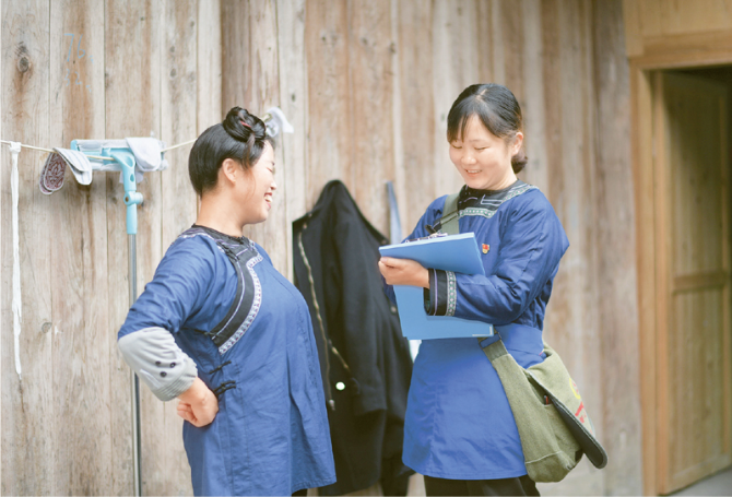 ?2020年11月16日,貴州省黔東南苗族侗族自治州榕江縣平江鎮(zhèn)巴魯村網格員劉園(右)走訪結對幫扶戶時,與村民韋福琴核對生產生活情況。32歲的共產黨員、退伍軍人劉園是榕江縣退役軍人局的一名侗族干部,她2019年11月到巴魯村擔任網格員后,全身心投入脫貧攻堅工作。在擔任網格員的一年多時間里,劉園忙著為未就業(yè)村民推薦崗位,協(xié)助搬遷戶舊棚拆除,投入復墾復綠等工作,腳踏實地履行工作職責;同時,還積極主動為村民辦實事、解難題,關心留守兒童和空巢老人,以熱情和敬業(yè)的精神贏得了群眾的信賴。2019年,劉園被貴州省評為脫貧攻堅優(yōu)秀共產黨員。 新華社記者 楊楹/攝