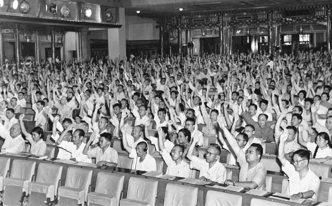 1955年7月5日至30日召開的第一屆全國人民代表大會第二次會議,通過了中華人民共和國發(fā)展國民經(jīng)濟(jì)的第一個五年計劃,圖為大會現(xiàn)場。 新華社記者 錢嗣杰/攝