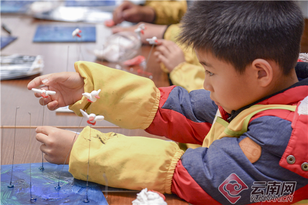 要做一只乘風博浪的海鷗,朝著海的方向,銜來春的希望。1月16日,第十四屆昆明海鷗文化節(jié)金鼎獎文創(chuàng)大賽童趣探索單元的第二期創(chuàng)作在保利春湖國際生態(tài)城舉行,40多名小朋友在老師的指導下,獨立完成了參賽作品。