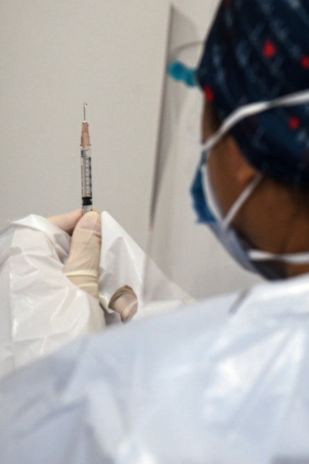 1月14日,在印度尼西亞雅加達(dá)的一家醫(yī)院,醫(yī)護(hù)人員準(zhǔn)備使用中國科興公司的克爾來福新冠疫苗進(jìn)行注射。