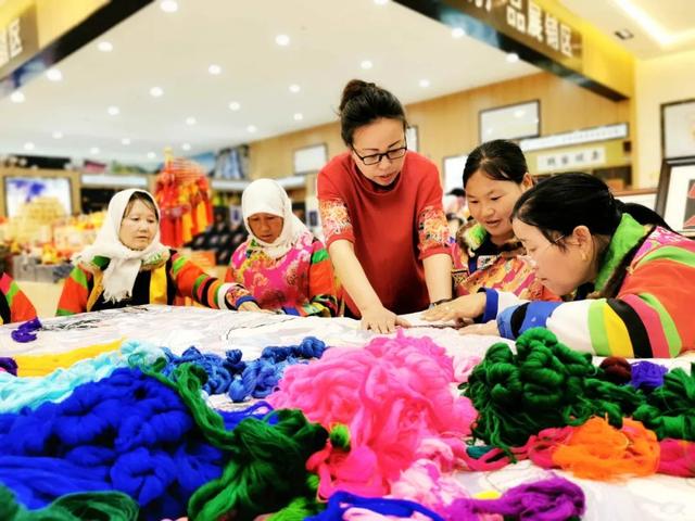 第一個(gè)扶貧車(chē)間的嘗試獲得了成功,公司以“企業(yè)+基地+農(nóng)戶(hù)+能人+市場(chǎng)”的生產(chǎn)經(jīng)營(yíng)模式,在一些鄉(xiāng)鎮(zhèn)村屯設(shè)立了基地和車(chē)間,免費(fèi)提供技術(shù)培訓(xùn)和原材料。家門(mén)口的扶貧車(chē)間、免費(fèi)的培訓(xùn)也吸引了一批80后、90后女孩回鄉(xiāng)學(xué)習(xí)盤(pán)繡技藝。在繡娘們的巧手下,土族盤(pán)繡作品“太陽(yáng)花”繡在了土族民族服飾上,綻放在了筆記本、背包、手機(jī)套等旅游禮品上。如今,公司在互助縣的很多村建立了刺繡基地和扶貧車(chē)間,越來(lái)越多的當(dāng)?shù)貗D女通過(guò)手工盤(pán)繡增加了收入,過(guò)上了富裕的生活。