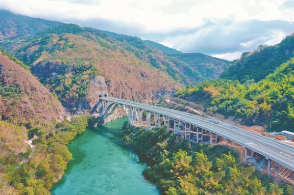 新年新氣象,瀾滄江兩岸生機(jī)勃勃,普洱“綠三角”風(fēng)情無限。婉若游龍的思茅至瀾滄高速公路飛躍瀾滄江,穿山越嶺,為邊疆群眾打通了走向美好生活的“快車道”。