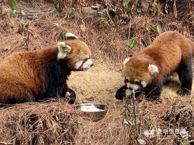 小熊貓的“臘八粥”是甜甜蜜蜜的,小熊貓喜歡吃甜食,工作人員在小熊貓的“臘八粥”中則加入了蜂蜜和蘋(píng)果,讓它們甜甜蜜蜜過(guò)個(gè)節(jié)。