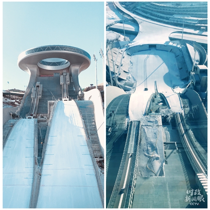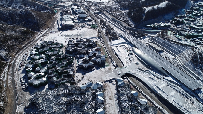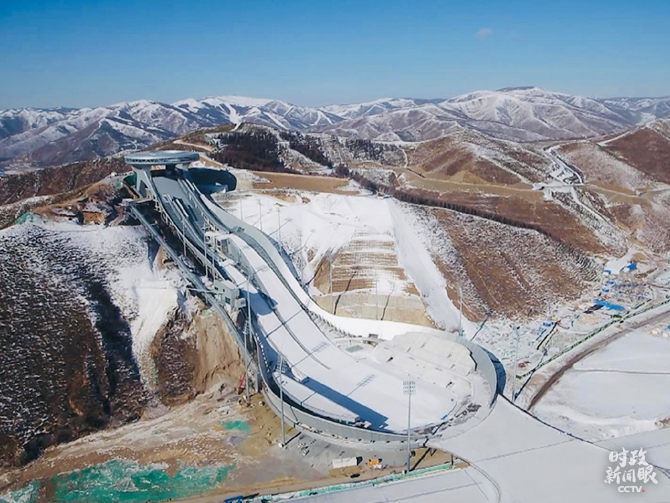 △國家跳臺滑雪中心建設(shè)于山谷之間,主體建筑設(shè)計(jì)靈感源于中國傳統(tǒng)飾物“如意”,取名“雪如意”。(總臺央視記者李揚(yáng)、劉翀拍攝)