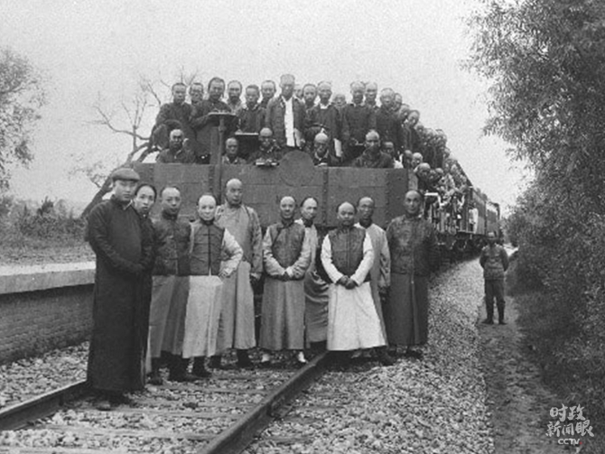 △這是京張鐵路修成時(shí),詹天佑(車前右三)和同事的合影。(資料圖)