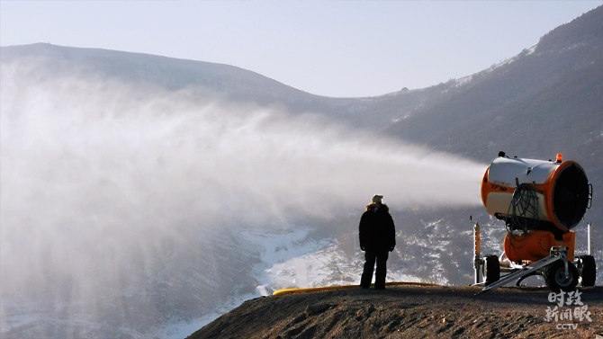 △國家跳臺滑雪中心造雪機(jī)工作現(xiàn)場(總臺央視記者張曉鵬拍攝)