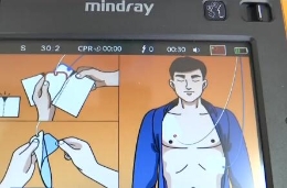 AED自帶電池,打開(kāi)后就會(huì)有語(yǔ)音提示和圖示,搶救者按照語(yǔ)音提示進(jìn)行操作即可: