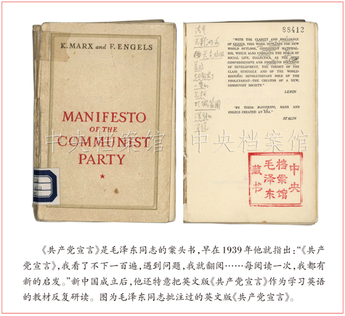 1939年底,毛澤東同志對(duì)一位剛調(diào)到延安馬列學(xué)院學(xué)習(xí)的同志說,“《共產(chǎn)黨宣言》,我看了不下一百遍,遇到問題,我就翻閱馬克思的《共產(chǎn)黨宣言》,有時(shí)只閱讀一兩段,有時(shí)全篇都讀,每閱讀一次,我都有新的啟發(fā)”。